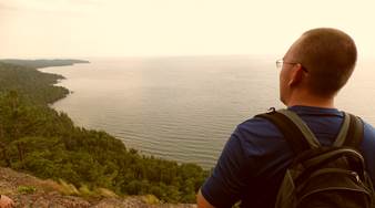 Counter Clockwise (right) = 5.0 (more difficult). This way will take you along the face of the bluff getting you very up close and personal with the cliffs. The trail can be very difficult at times with lots of rugged terrain covered with rocks and tree roots. Also, the trail can be overgrown at places making it hard to follow at times so please pay attention to trail markers that are positioned as much as possible on trees and other surfaces. After passing the cliffs you will reach the east side of the cliffs. From here you will need to ascend a steep and rocky cliff to reach the top of the bluffs which is why I suggest going in this direction as it would be much more dangerous coming down this section of the trail than going up. Watch your footing and take your time. Also, if you are in a group please make sure you give some distance between each member as some rocks may come loose and roll down the slope. Once at the top you can easily complete the loop back to the trail head after a short break and possible snack overlooking the Keweenaw and Lake Superior. Again, if you have pets, small children, members that are elderly or otherwise inexperienced I would not complete this part of the hike but use the other section of the loop to reach the summit.