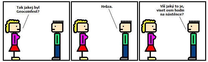 Vítejte přátelé, na PPPVLK* - tedy vlastně Vořechovic Trailu. Já jsem pan Vořech. Dostal jsem za úkol vás tady u nás přivítat a povědět vám něco o nás a o tom, co jsme zde stvořili. Jsme komiksová rodinka, která vznikla v prosinci 2012 na Skořápkách**. Nejznámější z celé rodinky jsem určitě já, následuje můj syn Frenk (ten v zeleném tričku) a pak snad i ten jeho kamarád, který i v třiceti nad nulou nosí toho Santovskýho kulicha. A pak snad ještě náš reviewer, ve žlutém tričku a červených kraťasech. Postav se v našich stripech objevuje více, ale o některých nevíme nic ani my sami. Samozřejmě, nejsme první geocachingový komiks, dokonce ani v Česku. Zahraniční trh už delší dobu zaplavoval a stále zaplavuje Mietzecacher on Tour, u nás zase v letech 2006-2008 frčel Čtyřlístek. To je mimochodem jedna zajímavost - geocachingové komiksy u nás obvykle nevydržely více než třicet stripů. U nás to je jinak. Za dva roky už vyšlo stripů přes 250, 160 z nich dokonce knižně, zhruba stovka byla vystavená v roce 2013 na Geocoinfestu v Praze. Dokud nás bavilo být oblepení reklamami, vycházeli jsme dokonce v týdenním intervalu přímo na Geocaching.cz.
