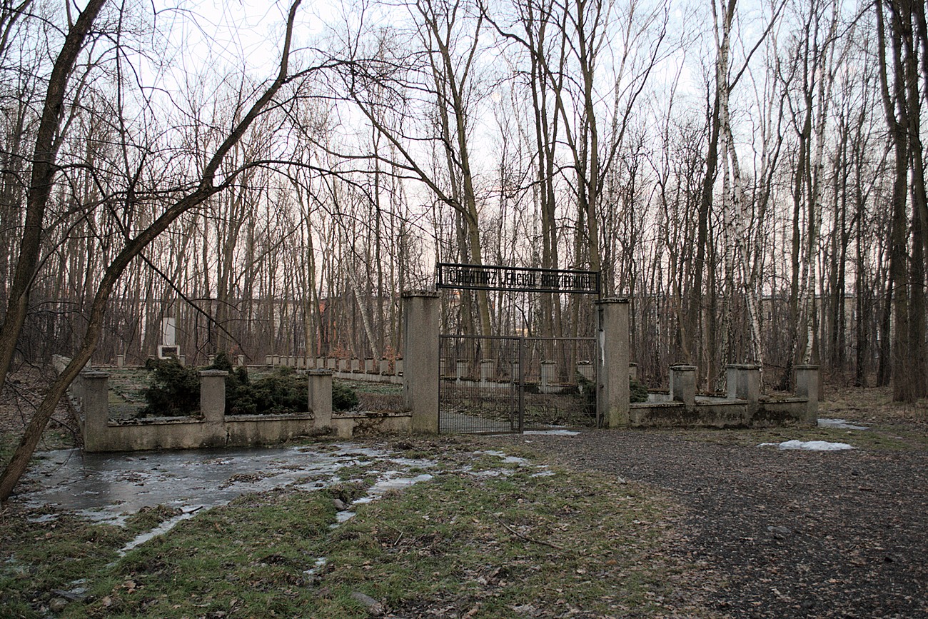 W latach 1943-45 pochowano 161 jeńców sowieckich, zamordowanych i zmarłych na skutek katorżniczej i przymusowej pracy w kopalni Makoszowy, o czym informuje postawiony tuż po wojnie ku ich pamięci obelisk. Istotnie, choć nekropolia leży tuż obok uczęszczanych ścieżek spacerowych, w wybujałym od czasu wojny lesie, z powodu braku tabliczek informacyjnych, pozostaje niezauważona dla większości spacerowiczów. Niestety, dobrze wiedzą o niej okoliczni pijaczkowie, którzy nie zważając na powagę miejsca, urządzają tam sobie libacje, a ich pozostałości w postaci pustych butelek i puszek muszą uprzątać służby porządkowe. Na razie, z powodu braku funduszy i obawy przed powtórną dewastacją, nie odtworzono łączących murowane słupki ogrodzenia, solidnych, kutych łańcuchów.