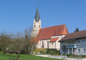führt euch zur spätgotischen Pfarrkirche St. Mauritius, die Ende des 15. Jahrhunderts vom Burghauser Baumeister Hans Wechselberger errichtet wurde. Im Zuge einer Kirchenrenovierung in den Sechziger-Jahren des letzten Jahrhunderts wurden Fresken über dem Portal der Kirche entdeckt und freigelegt. Wann sind diese Fresken entstanden?