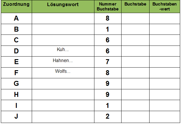 Die gefundenen Begriffe könnt ihr in die Tabelle eintragen und und dann die Koordinaten berechnen: