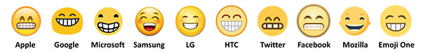 Hier ein grinsendes Gesicht auf verschiedenen Systemen:
