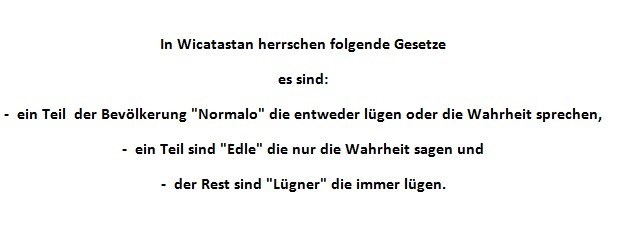 Auf zwei kleinen Insel leben jeweils genau 100 Wicata, von denen ein Teil immer die Wahrheit sagt und der andere Teil immer lügt. Amalia kommt auf die Inseln und fragt jede der 100 Wicata nach der Anzahl der Lügner.