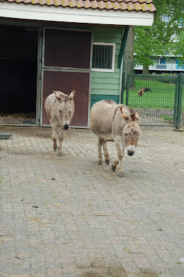 Ze vervolgt haar weg over de kinderboerderij. Op de voet gevolgd door het ezeltje. Die haar schijnbaar wel erg lief vind (of zou hij willen weten of ze nog meer van die lekkere appeltjes heeft.)