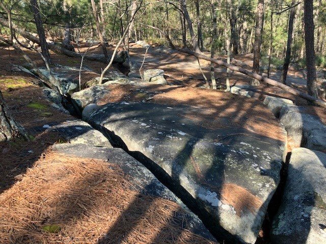 My wife and I hike around Stone Mountain fairly often. I decided to check on my other Stone Mountain cache and place a more "challenging" one.The stash is a tupperware container just larger than a CD case and about five times as deep. So don't plan to stuff anything in it larger than a CD.