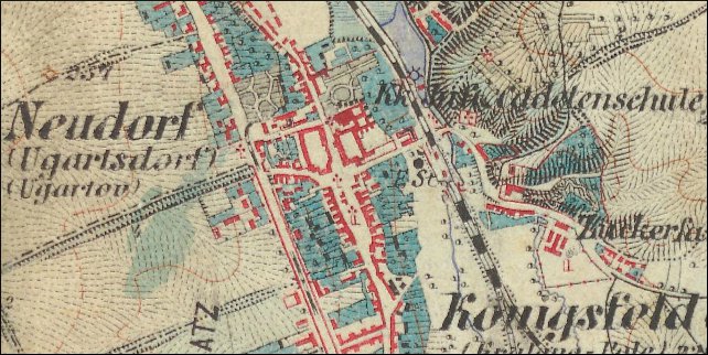 Mapa Kralova pole, III. vojenske mapovani - Frantisko-josefske, 1876-1878 (Morava a Slezsko), meritko 1 : 25 000.