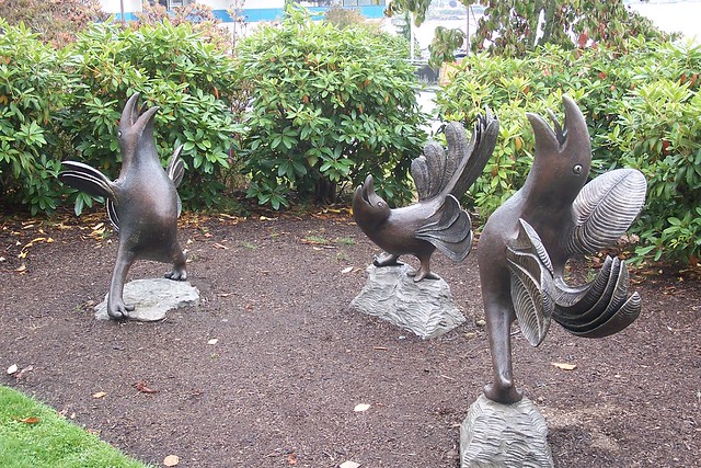 This stage, formally titled "Flying Fish" has been slightly updated as the previous sculpture has sadly been removed. You're still looking for a fish however, and while this newer sculpture is no longer kinetic, it is practical! Feel free to sit and ponder your answer.