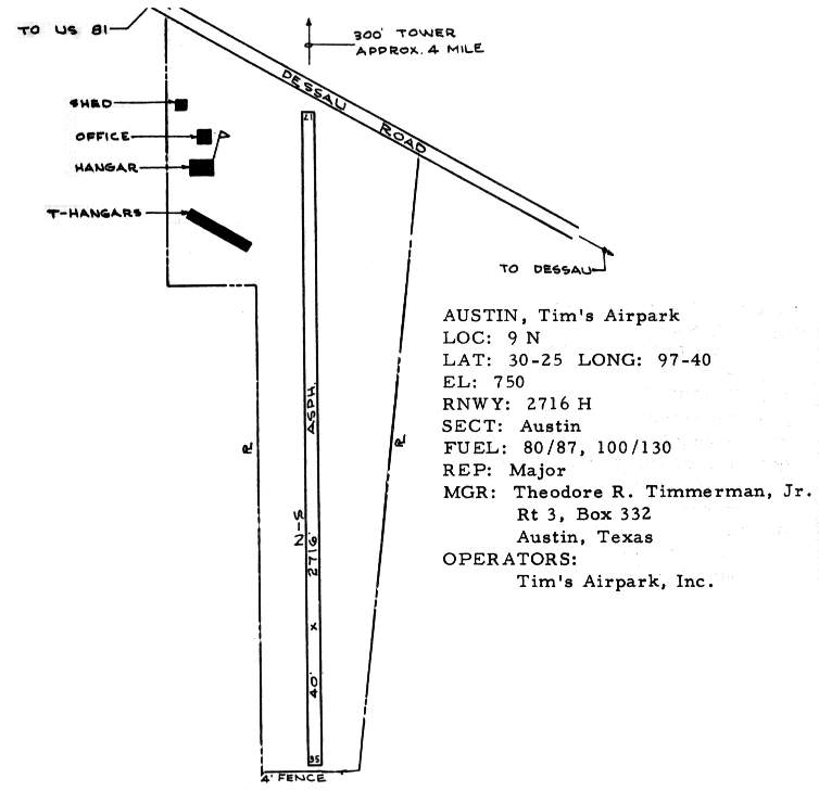 Tim's Airpark, as depicted on the April 1959 Austin Sectional Chart (courtesy of Chris Kennedy).