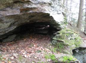 is a small window at rear of cave. This cave is a