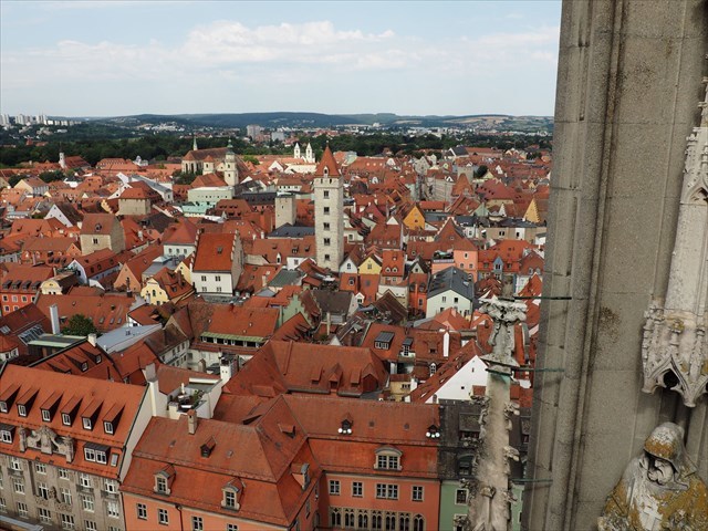 Blick vom Regensburger Dom auf das Haus Heuport und den Goldenen Turm