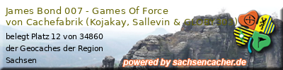 [Es sind ca. 30km Strecke zu fahren, da eine Bond-Story, bei der nicht durch eine ganze Stadt gejagt werden muß, unglaubhaft wirkt. Wem das zu viel ist, den bitten wir den Cache nicht zu suchen;-)
