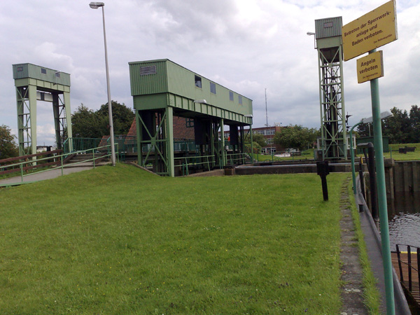 Die im Text erwähnte Schiffdorfer Stauschleuse hat ebenfalls von