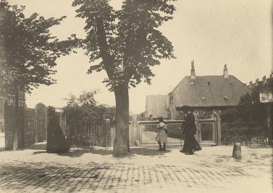 Gartner F.J. Kochs gartneri, med beboelseshuset set fra Vesterbrogade. Nedbrudt 1898.