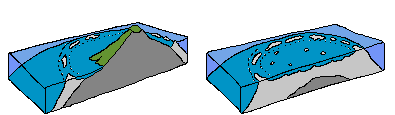 lagoons. Corals atolls are on the top of submarine mountains. These