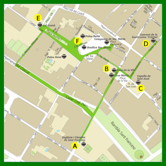 [ENG] Based on information from the website of the municipality of Vilafranca del Penedès. It consists of the resort center of town and look for clues around the sites representative of this medieval route to determine the final coordinates.