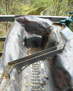 das mittlerweile etwas baufällige und teilweise undichte Aquädukt für den Krenkelbach