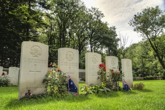 Bovenop de heuvel is er een monument voor de 5de Australische Divisie. De begraafplaats zelf werd aangelegd na de oorlog en bevat 1.317 graven.