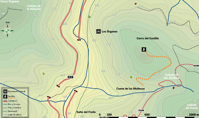 El Sendero se divide en dos tramos; el primero que nos llevará hasta el santuario ibérico o cueva de los muñecos, y el segundo que nos hará ascender, si lo deseamos, hasta el cerro del castillo, probable enclave íbero.