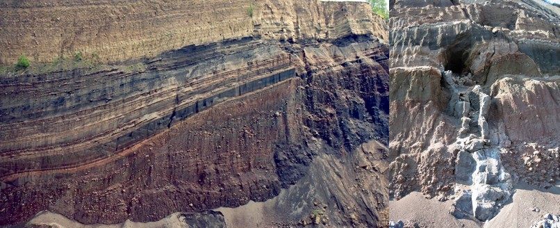 3) Wie heissen die verschiedenfarbigen Lagen in der oberen Abbauwand?