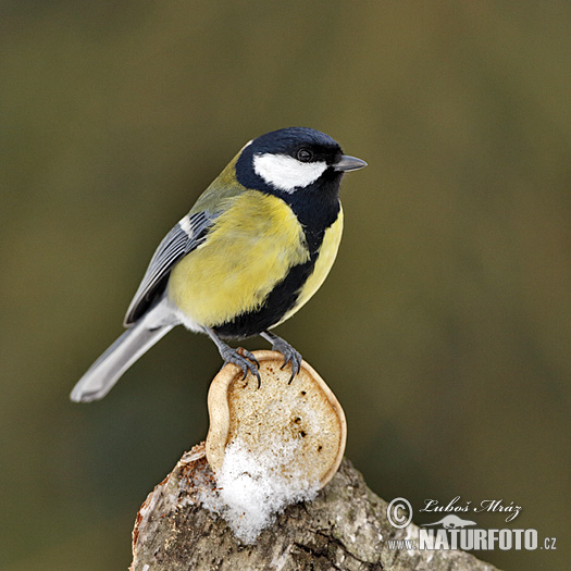 Sýkora koňadra (Parus major). Nejběžnější sýkora, velikosti štíhlého vrabce. Hlava je až na bílé tváře černá, černá barva (oproti jiným druhům sýkor) tvoří i náprsenku a pokračuje až na žlutě zbarvené břicho. Mimo dobu hnízdění se koňadra spolu s jinými sýkorami sdružuje v hejnka. Běžný druh v lesích všech typů, zahradách apod. Velmi obratně se ve všech polohách pohybuje po větvích. Živí se převážně hmyzem, na podzim a v zimě pak semeny, pupeny apod. Hnízdění, které začíná v dubnu nebo v květnu, probíhá výhradně v dutinách. Hnízdí dvakrát za rok. Snůšku 6 až 12 vajíček zahřívá zpravidla pouze samička a sameček ji krmí, o mláďata se pak starají oba rodiče. Přelétavá a zčásti tažná (menší část našich ptáků odlétá jihozápadním směrem, u nás zimující koňadry pocházejí ze severovýchodu a východu).