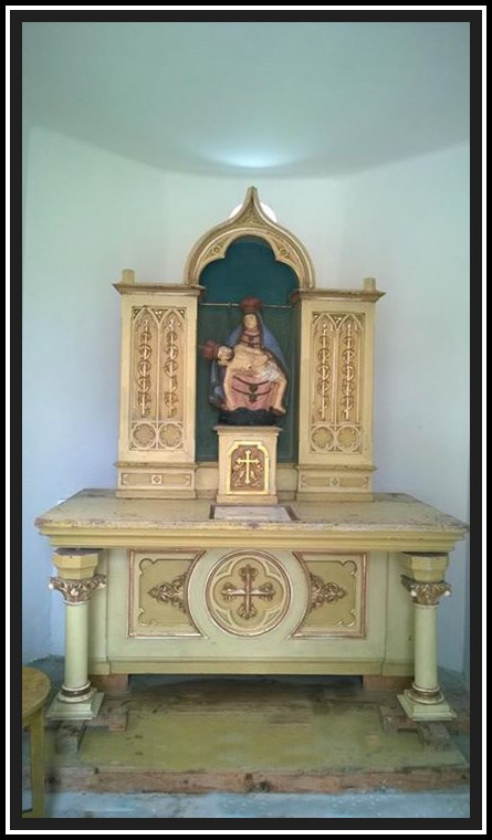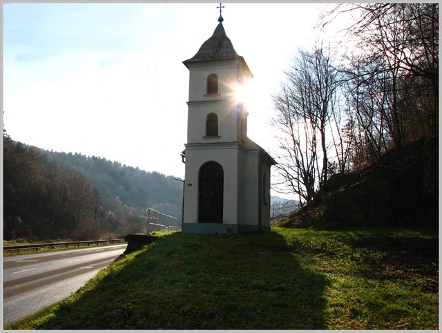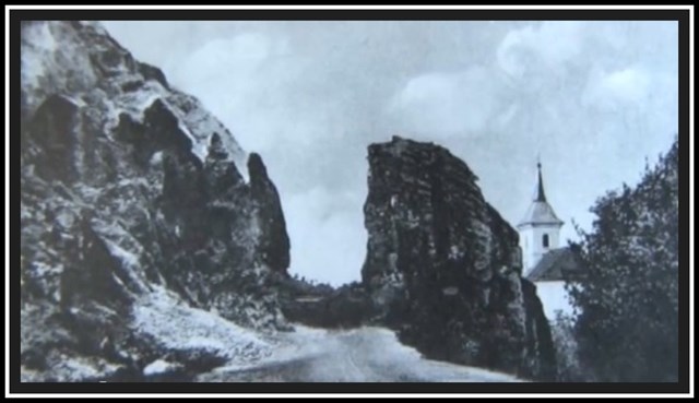 Stará fotografia s kaplnkou a pravdepodobne aj starou cestou medzi skalami do Handlovej ktorá sa ale nezachovala.