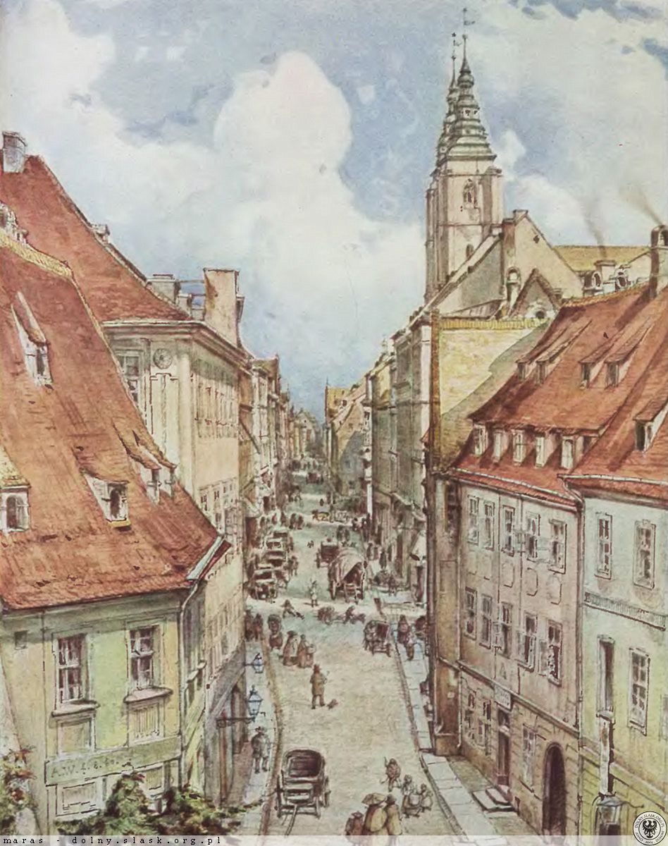 Straße wurde zu Beginn des dreizehnten Jahrhunderts, der Westgrenze wirkenden ersten Seite bebaute Fläche der Stadt gegründet. Zu dieser Zeit gab es bereits auf der östlichen Seite der Kathedrale von st. Andrew (später Maria Magdalena). Nach einem anderen Ort, mit der Gründung der großen Marktplatz verbunden sind, erhalten gegenseitige Entwicklung. Relativ schmale Straße Schuster läuft ca. 100 m östlich vom Platz, und als einer der zwei Straßen erreicht bis an den Rand der Oder, der Überquerung des ehemaligen Fürstentums Bereich. Deutsch Schuhbrücke Dieser Name gibt die Straße Sie relativ früh ausgehärtet (asphaltiert). Forscher gebunden alten Straße von seinem nördlichen Abschnitt, läuft durch den fürstlichen Domänenbereich, außerhalb der Stadt Tracking - an der Grenze, auf der Straße. Universität und pl. Bischof Nankier natürlich Leute sahen einen Graben oder eine Niederlassung der Oder.
