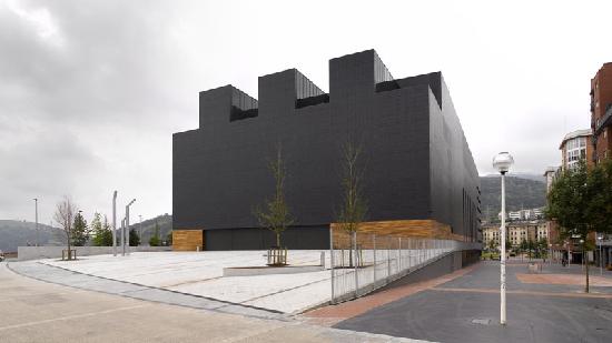 El resultado es un gran monolito negro, que constituye un hito en el paisaje periurbano de Bilbao.