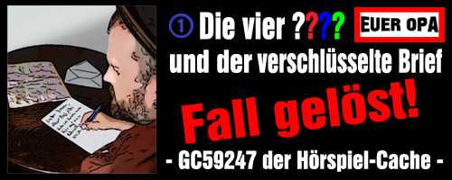 <p align="center"> <br /> <a href="http://coord.info/GC59247"> <img src="http://www.channel77.de/caches/Hoerspiel/Ich_habe_den_Fall_geloest.jpg" alt="Die vier ???? und der verschlüsselte Brief - Ich habe den Fall gelöst!"> </a> </p>