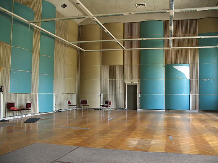 Nach wenigen Schritten kannst du einen Blick in den Hof des ehemaligen Funkhauses werfen. In den Garagen standen die Übertragungswagen. Wie vielen Fahrzeugen boten sie Platz? (= D)
