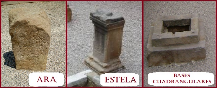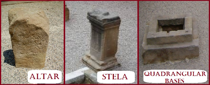In the necropolis we can find five types of funerary monuments; the cupae, the predominant; they are followed by the altars, the stelas directly embedded in the ground, the conical tumulus and the quadrangular bases.