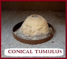 El único tumulto cónico que podemos observar tiene una característica particular, se trata de una sepultura de una collegia funeraticia. Es decir, los que no tenían suficientes recursos económicos, se apuntaban a collegia funeraticia, asociaciones privadas, a veces de carácter profesional, que reunían a hombres libres y esclavos de escaso poder adquisitivo, los cuales mediante el pago de una cuota mensual en vida se aseguraban el enterramiento.