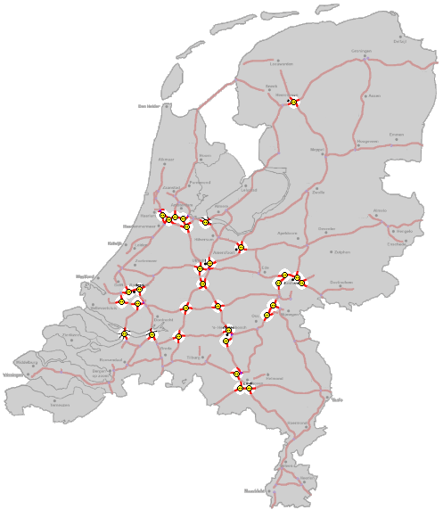 Om de coördinaten van de cache te ontdekken, moet je wel even een puzzel oplossen. Hierin staan bekende knooppunten van Nederlandse A-wegen centraal. Zoek de waarde van de knooppunten op en voer daarmee de onderstaande berekeningen uit, zodat je de getallen A t/m D vindt, waarmee je de plaats van de cache kunt ontdekken. Voeg een paar tekens toe voor het beste resultaat.