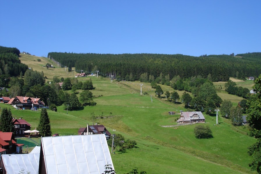Tento překrásný výhled se vám naskytne poté, co stanete s keší v ruce. A co můžete vidět? Tak například Portášovy boudy, lanovku na Portášky, v zimě sjezdovku a taky spoustu horských chalup.