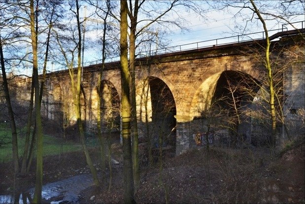 Zděný železniční most - pískovcové a žulové kvádry z roku 1844 (stavba trati). Rozpětí každého z oblouků je 9m, výška 13m a celá délka asi 135m, je veden do mírného oblouku pro dvě koleje na trati Praha - Kolín (- Č. Třebová, Brno), od žst. Úvaly ve směru na Tuklaty. Pokud projíždíte po viaduktu vlakem, asi toho mnoho neuvidíte, protože zvrchu vypadá jako klasický most. Pokud ovšem sestoupíte z úvalského náměstí ulicí Komenského dolů, k Výmole a rybníku Fabrák, dostanete se po chvilce k tomuto technickému skvostu. Je možné projít mezi dvěma souběžnými oblouky viaduktu a kochat se tou majestátností, zkaženou jen útoky sprejerů. K viaduktu je možné se také dostat po ČTZ od úvalského nádraží a Hradešína.