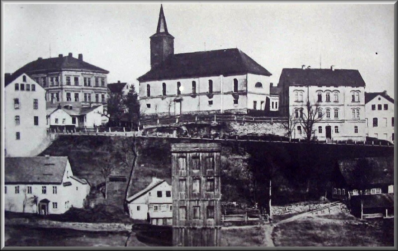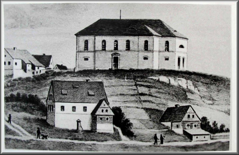 Budova byla jako protestantsky sakralni objekt postavena v roce 1833, v roce 1838 vysvecena. Jako stavitel je uveden zednicky mistr Josef Wörfel z Liberce a tesarsky mistr Marras z Jablonce nad Nisou. V roce 1861 tesarsky a zednicky mistr Ferdinand Miksch vyzdvihl nad modlitebnu ctverhrannou drevenou vez. Do ni byly v roce 1864 zaveseny dva zvony. Drevena vez vsak dlouho neobstala. Podlehla povetrnostnim vlivum a musela byt strzena. V roce 1892 byla zahajena rozsahla uprava chramového portalu a polozeny zaklady veze kamenne - vse v novogotickem slohu. Za necely rok - v prosinci 1892 se uskutecnilo slavnostni vysveceni obnoveneho chramu. Autorem prestavby a zaroven stavitelem byl v nasem meste znamy Arwed Thamerus.
