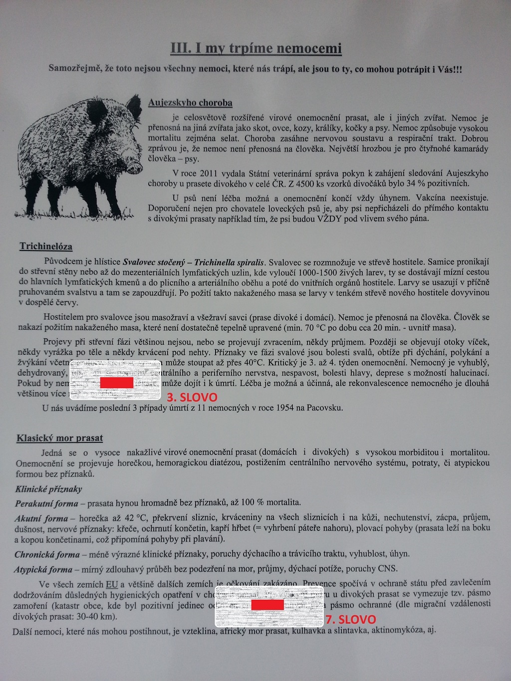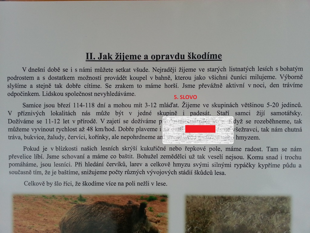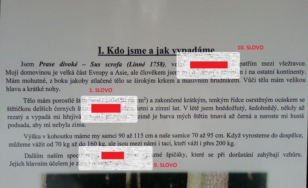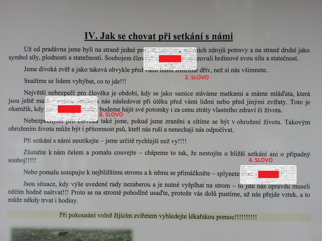 Mohl jsem indicie vytvorit jinak, ale zamer vyuzit stavajici texty byl zvolem proto, aby lovci text zastavek opravdu precetli a odnesli si zajimave informace o zivote cerne zvere.