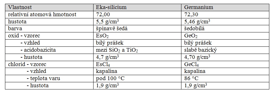 V pozdějších letech, byla pravdivost periodického zákona dokázána objevy prvků patřících na vynechaná místa. Gallium tak nahradilo prvek Mendělejevem nazvaný eka-aluminium, tedy hliník plus jedna, bylo prvním prvkem objeveným díky jeho předpovědi a Mendělejev na jeho objev čekal celých šest let od doby, kdy jeho existenci předpověděl. A další prvky (skandium, germanium) nabídly další důkazy o pravdivosti periodického zákona. Kromě existence těchto prvků Mendělejev také úspěšně předpověděl jejich chemické a fyzikální vlastnosti. Mendělejev si byl svými předpověďmi vlastností nových prvků natolik jistý, že při objevu eka-aluminia (gallia), prvního z předpověděných prvků, žádal o nové stanovení hustoty tohoto prvku, ostatní nalezené vlastnosti totiž přesně souhlasili s předpovězenými, jenom hustota se lišila. Předpověď očekávala 5,9 až 6,0 g/cm3, ale zjištěno bylo jen 4,7 g/cm3. Objevitel gallia Boisbaudran tedy na žádost Mendělejeva pokus opakoval a zjistil, že se během svého prvního měření opravdu zmýlil a nově změřená hustota gallia je 5,94 g/cm3, pro puntičkáře dnes má gallium tabelovanou hustotu o hodnotě 5,910 g/cm3. To jak úspěšný v předpovědích vlastností zatím neobjevených prvků byl, můžete sami posoudit na příkladu eka-silicia, které bylo po objevení nazváno germaniem. V sloupci nadepsaném eka-silicium jsou vlastnosti předpovězené Mendělejevem, ve sloupci germanium se nachází skutečné vlastnosti získané měřením.