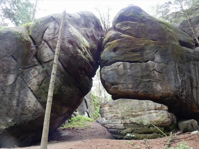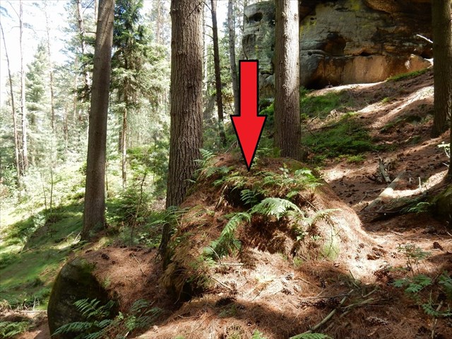 Jsme v sérii skalních bran, tak u jedné zdejší, na souřadnicích N50°37.975 E15°10.740, začne vaše hra. Projděte bránou jihovýchodním směrem a asi po patnácti metrech se zastavte u dvojstromu, který je srostlý těsně nad zemí.