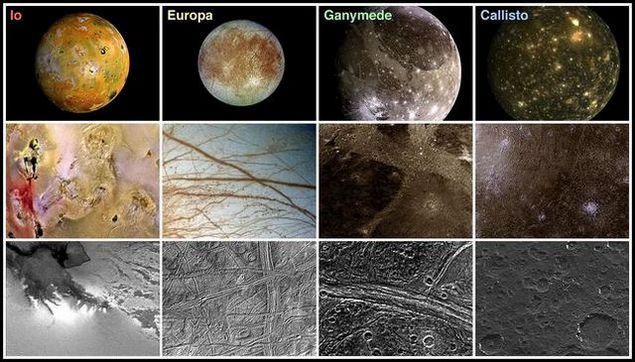 Callisto has an ancient, heavily-cratered and unaltered ice surface and the way it rotates indicates that its density is equally distributed, suggesting that it has no rocky or metallic core but consists of a homogeneous mix of rock and ice.