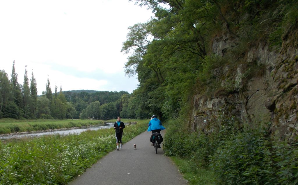 Stezka se opět přibližuje k řece, její povrch se zlepšuje a vede nádherným prostředím s lesem a skalkami, kterým se dostaneme až do Písku, v jehož malebném centru je opět čím se kochat. Ani za Pískem stezka podél řeky nezklamává a je radost po ní jet až k plynové lávce.