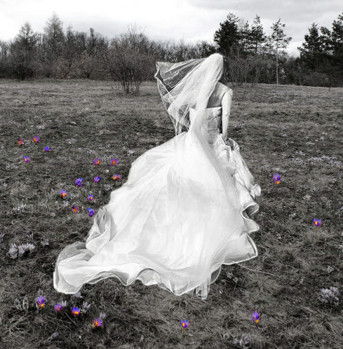 Nevěsta utíkala přes louku, trochu se zamotala, ale byla si jista, že jí její milý pomůže. A protože byla zkušená tábornice, zahodila kapesníček a doufala, že ji Shebyr najde co nejdřív.
