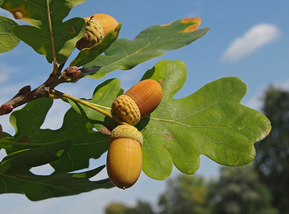 Zajímavost navíc – víte, že žaludy mají velkou výživovou hodnotu? Obsahují 57% škrobu, 10% cukru, 7% bílkovin a 5% tuku. Pro zálesáky, pokušitele a kulináře přidávám recept na Zálesácký dort ze žaludů podle Jaroslava Foglara. Pokud žaludy sbíráte již přešlé mrazíkem, prý budou mnohem lepší.Podle Foglarova návodu rozlouskejte asi 1,5 kila žaludů a vyndejte z nich jádra. Slupky jsou opravdu pevné a bude potřeba trochu fortelu a pečlivosti. Přitom je třeba dávat pozor na červavé žaludy. Ideální jsou žaludy, které mají čistě hnědé zabarvení, mají pevnou a neporušenou slupku. Pak je nutné odstranit z každého jádra tenkou hnědou slupku. Zde se osvědčí metoda, která se používá při loupání mandlí – ponořit jádra do teplé vody. Očištěná jádra rozřežte na čtvrtiny a vložte do velkého hrnce s vodou. Voda se zakalí,tak ji asi 3x denně vyměňte. Tříslovin je v žaludech opravdu hodně, a tak je třeba vydržet s výměnou vody asi 4 dny. Až se voda přestane zakalovat,dáte na jeden díl žaludů dva díly vody. Hrnec necháte zvolna ohřívat a následně vaříte asi 20 min. Když jsou ohřáté a trochu změklé, odstavíte, zcedíte a žaludy pak rozemelete na strojku na maso. Vzniklou žlutou hmotu rozprostřete a necháte sušit -i několik dní. Žaludový polotovar dosušte na plotně. Hmota by měla ztvrdnout, zhnědnout a skutečně chutnat jako pražené mandle. Další fází je mletí mouky a samotné pečení dortu. Jak píše Foglar, ideální je mlýnek na kávu, mohl by postačít i mlýnek na strouhanku či oříšky. Jeho použitím vznikne hnědá žaludová mouka. Do té přidáte pár lžic polohrubé mouky, zaděláte mlékem a pečete placičky. Několik upečených placek potřete třeba malinovou zavařeninou, položíte je na sebe – a dort je hotov.Doporučení: nechte alespoň přes noc v lednici odležet.