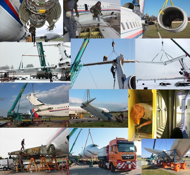 Jak mozna vite, TU-154 nepatri k nejmensim dopravnim letadlum. S delkou temer 48 m a rozpetim pres 37 m je to vlastne docela slusny macek. Nu, a rozebrat takovehle letadlo tak, aby z nej zbyl jenom trup, to neni uplne jednoducha prace. To letadlo je totiz stavene tak, aby se nektere jeho casti rozebrat nedaly. Takze by to nebyla uplne jednoducha prace ani pro profesionaly se specializovanym vybavenim.
