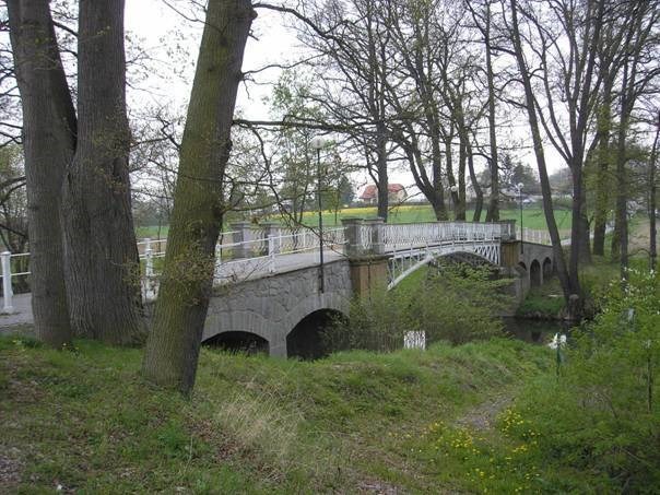 V tomto případě se jedná o příjezdní litinový most k původnímu loveckému zámečku Kozel, později přestavěnému na šlechtické sídlo. Most k zámku je 30 metrů dlouhý a 3,75 metru široký, přičemž jeho mostovka je ve výšce 4 metrů nad hladinou řeky Úslavy. Jeho nosnou konstrukci tvoří čtyři souběžné, poměrně ploché segmentové oblouky dosti zvláštního, částečně kruhového průřezu o průměru 15 cm. Litinový most byl údajně vyroben ve Valdštejnských železárnách v Sedlci. Vstup na most je okrášlen ozdobnými kamennými sloupky a opatřen ozdobným zábradlím se sloupky. Před mostem ze strany od Šťáhlavic můžeme obdivovat d vzrostlých listnatých stromů. Most je zařazen mezi nemovité kulturní památky, litinové mosty jsou u nás vzácností, a to zejména poté, co byly sneseny litinové nadjezdy na trati Brno-Kojetín v Hostěhrádkách a Chválkovicích.
