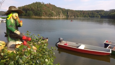 Je tady i jedna postavička, která dohlíží na dění ve dne i v noci. Na památku nedávno zesnulého místního kamaráda a výborného rybáře J. Kováře.