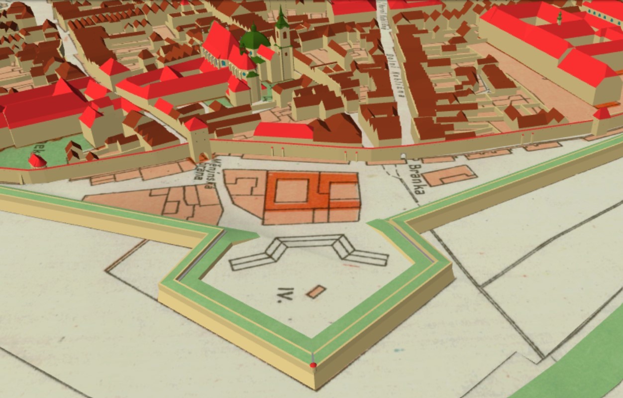 modelu města v roce 1645. Ten totiž velmi názorně ukazuje jeho tehdejší opevnění.