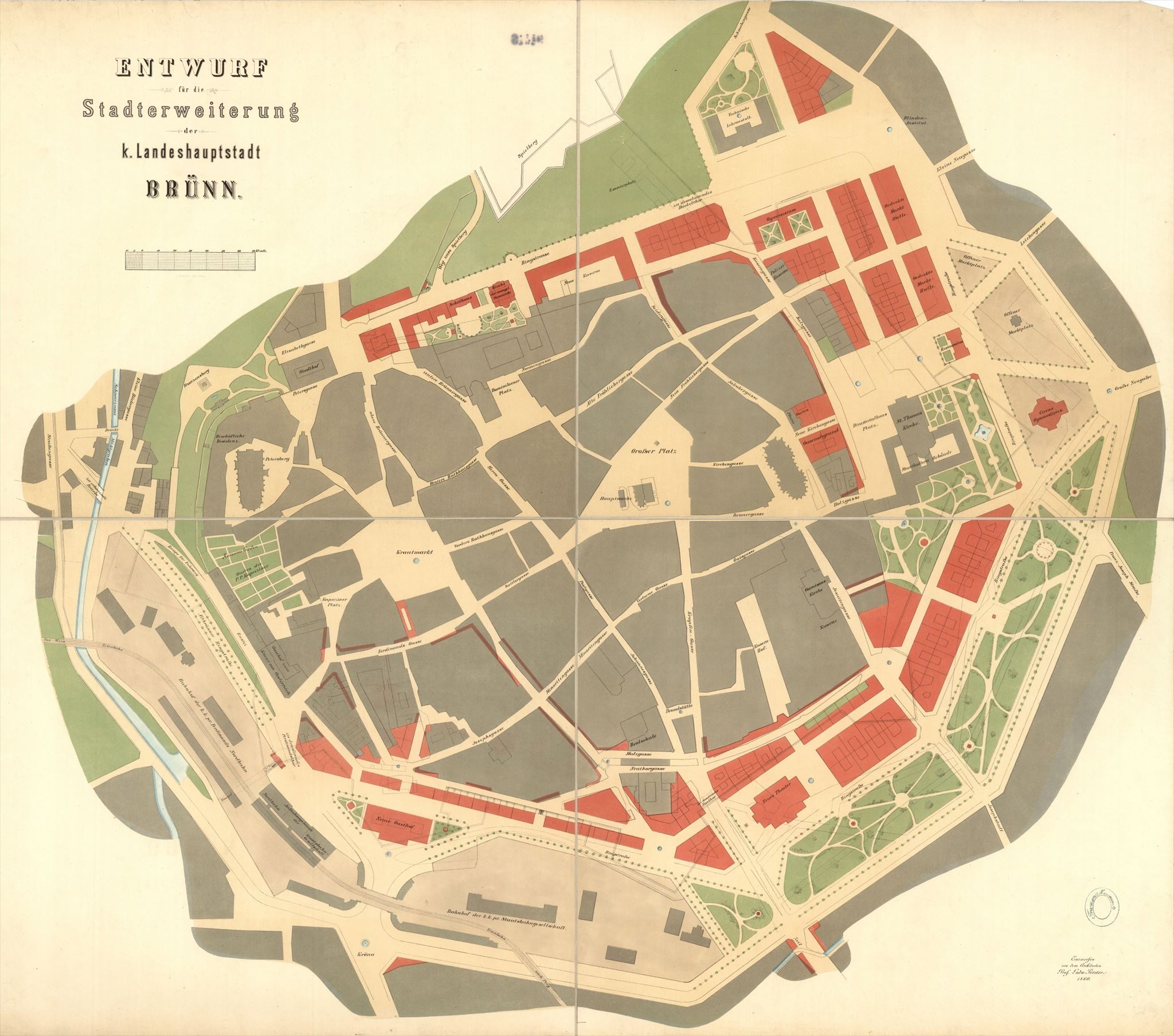 Plánovaná proměna prostranství před Ferdinandovou branou a brněnským nádražím na park (dnes ulice Nádražní)
