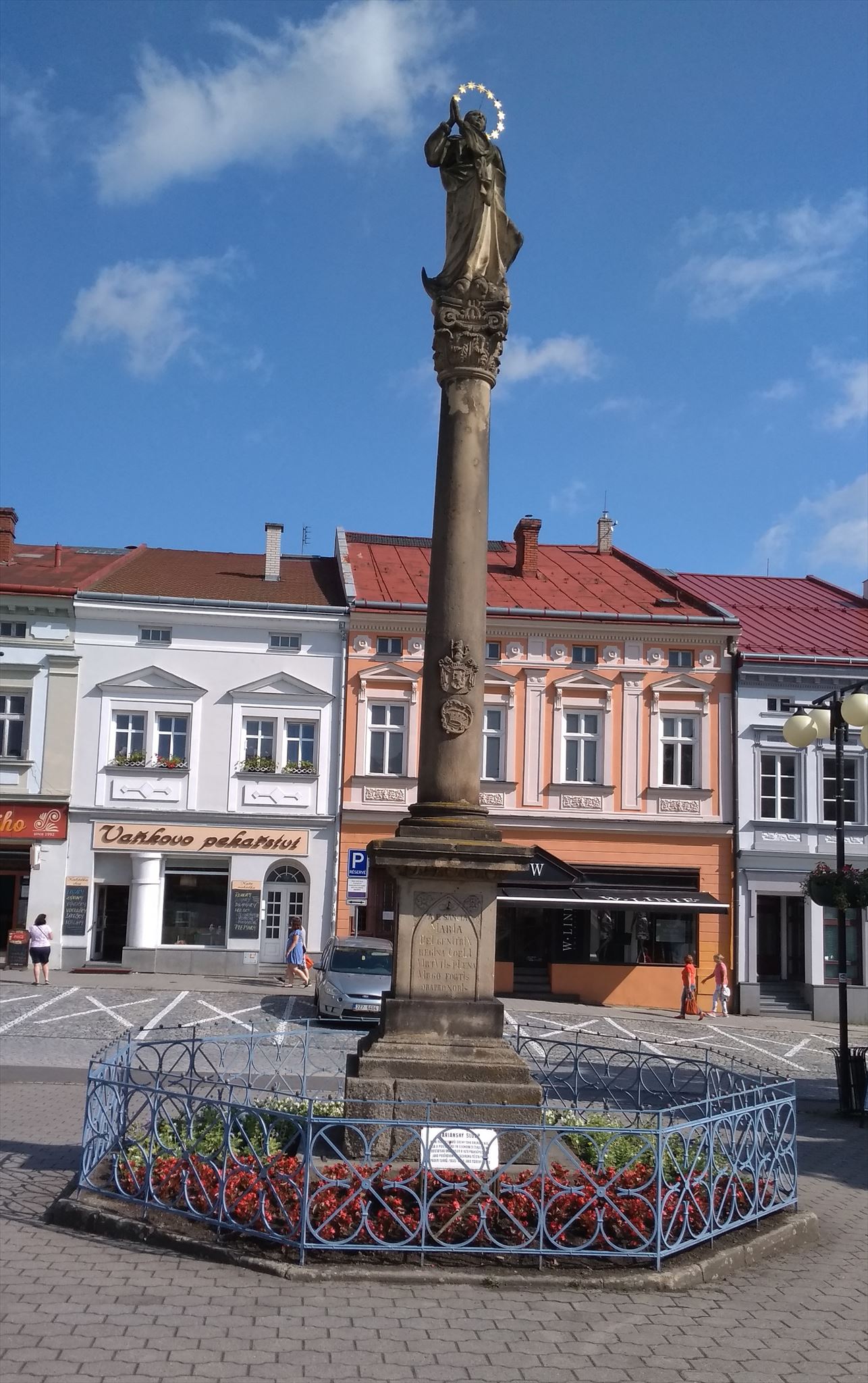 Kromě radnice je jedním z nejzajímavějších domů barokní dům U dvanácti apoštolů z roku 1598, zdobený reliéfy svatých ze 2. pol. 18. stol. Nachází se v rohu náměstí na křížení ulic Komenského a Křižkovského. Centrální plochu náměstí krášlí dvojice soch, které od sebe dělí dvě staletí. Starší z nich je barokní morový sloup Panny Marie z poslední třetiny 17. stol. Plastika vynikající umělecké úrovně je důležitá svým umístěním v prostoru náměstí. Jejím protějškem je socha sv. Floriána z roku 1901. Dílo Františka Neumanna z Kroměříže stojí na bohatě členěném barokním podstavci z první poloviny 18. století.