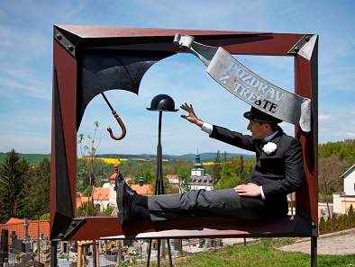 V našem městě Třešť máme od letošního jara (květen 2019) novinku, kovanou skulpturu v podobě obří pohlednice, která vznikla v místní kovárně Petra Píši. Součástí atrakce je i typická buřinka s deštníkem, která neodmyslitelně patří ke slavné postavě Pana Tau, kterého ztvárnil třešťský rodák Otto Šimánek. Nechybí ani nápis v duchu prvorepublikových pohlednic "Pozdrav z Třeště".