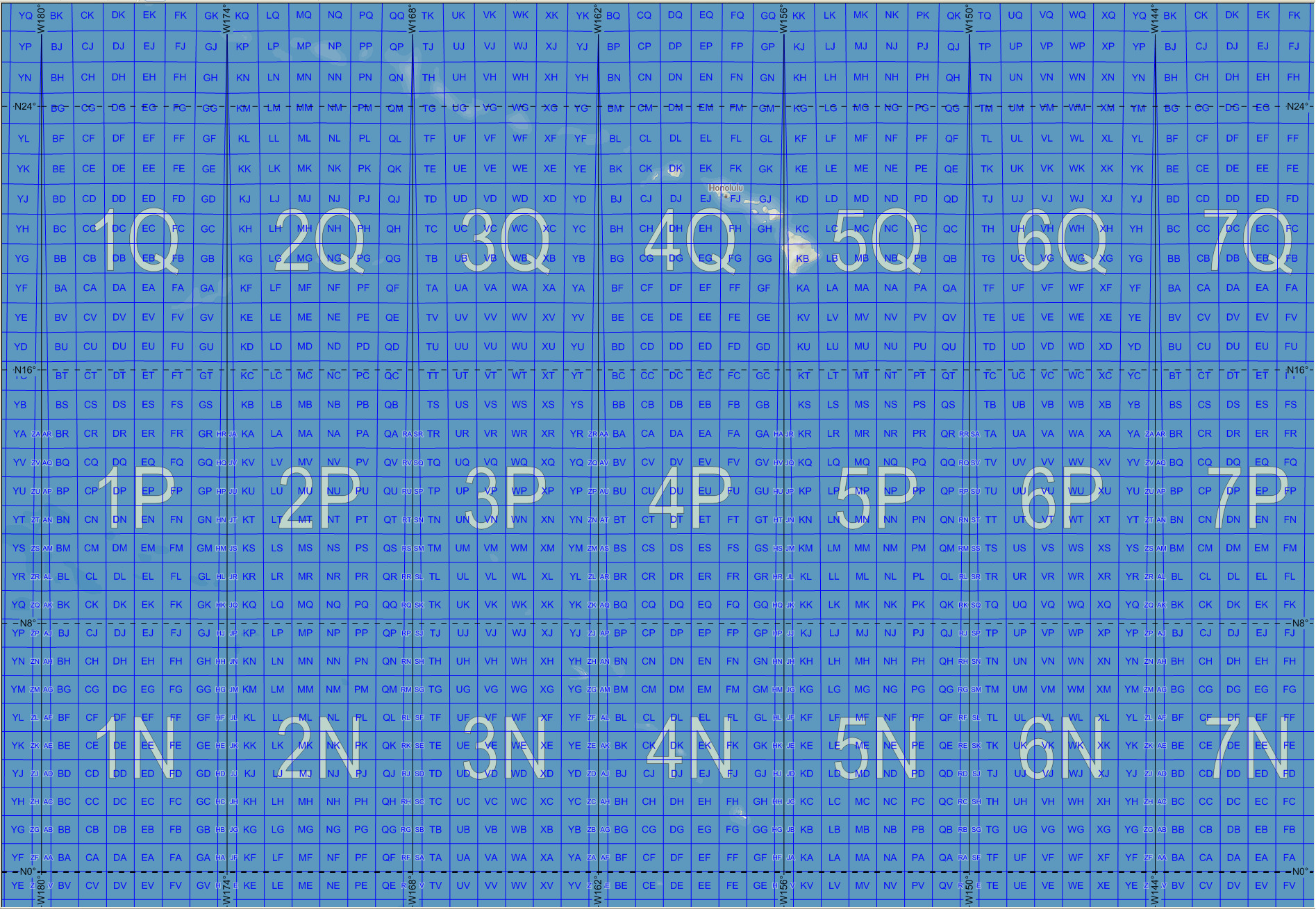 - SK - sever kilometrové sítě (definován směrem osy sítě).